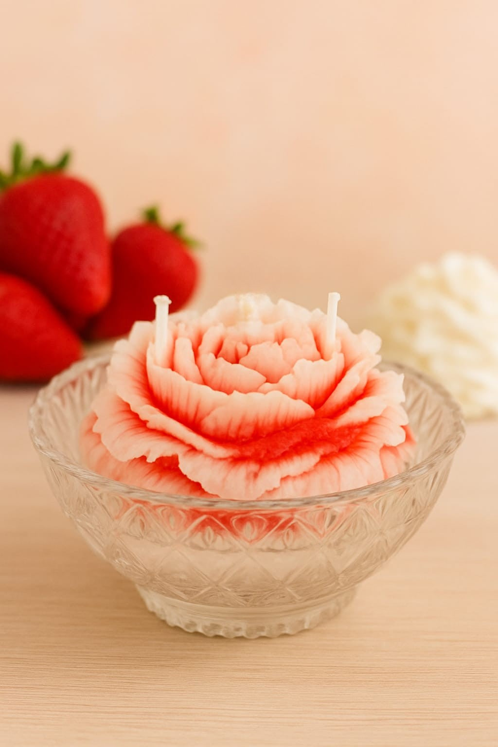Doce, vibrante e cheia de atitude. A fragrância combina o frescor do morango com um toque de chantilly, criando um aroma marcante que preenche o ambiente com personalidade. Uma vela feita para quem gosta de intensidade — na vida e no aroma.
